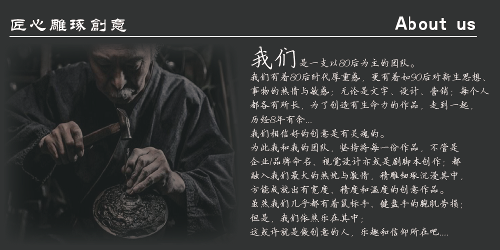 使命愿景 品牌起名 品牌文案 品牌故事 公司简介 品牌广告 商业计划 品牌策划 企业文化征集大赛